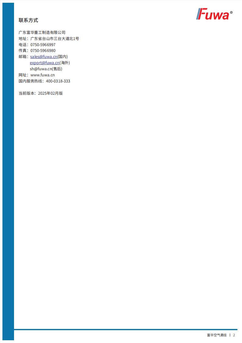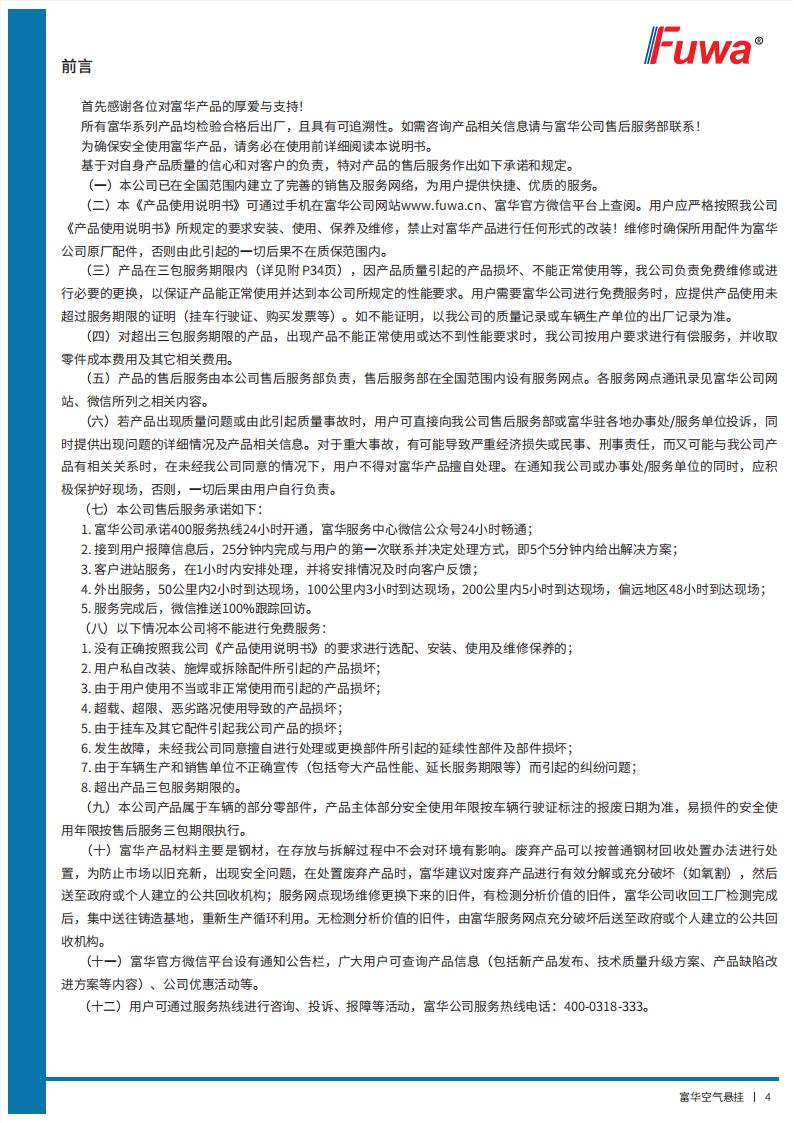 富華空氣懸掛【產(chǎn)品使用說明書】